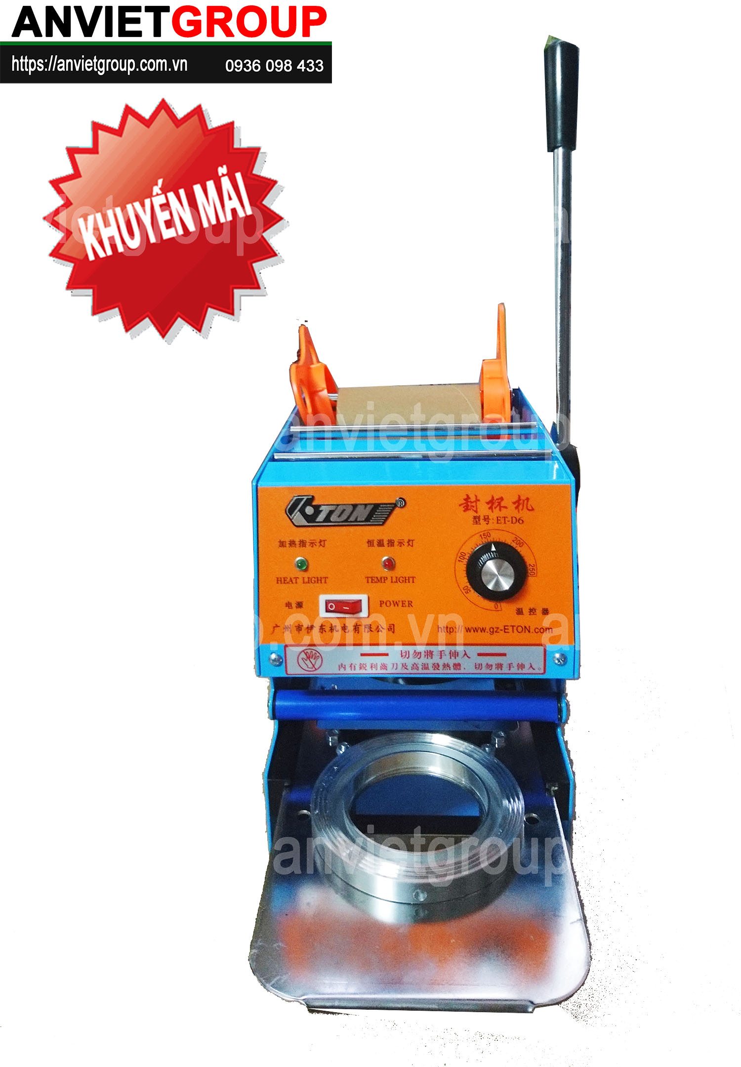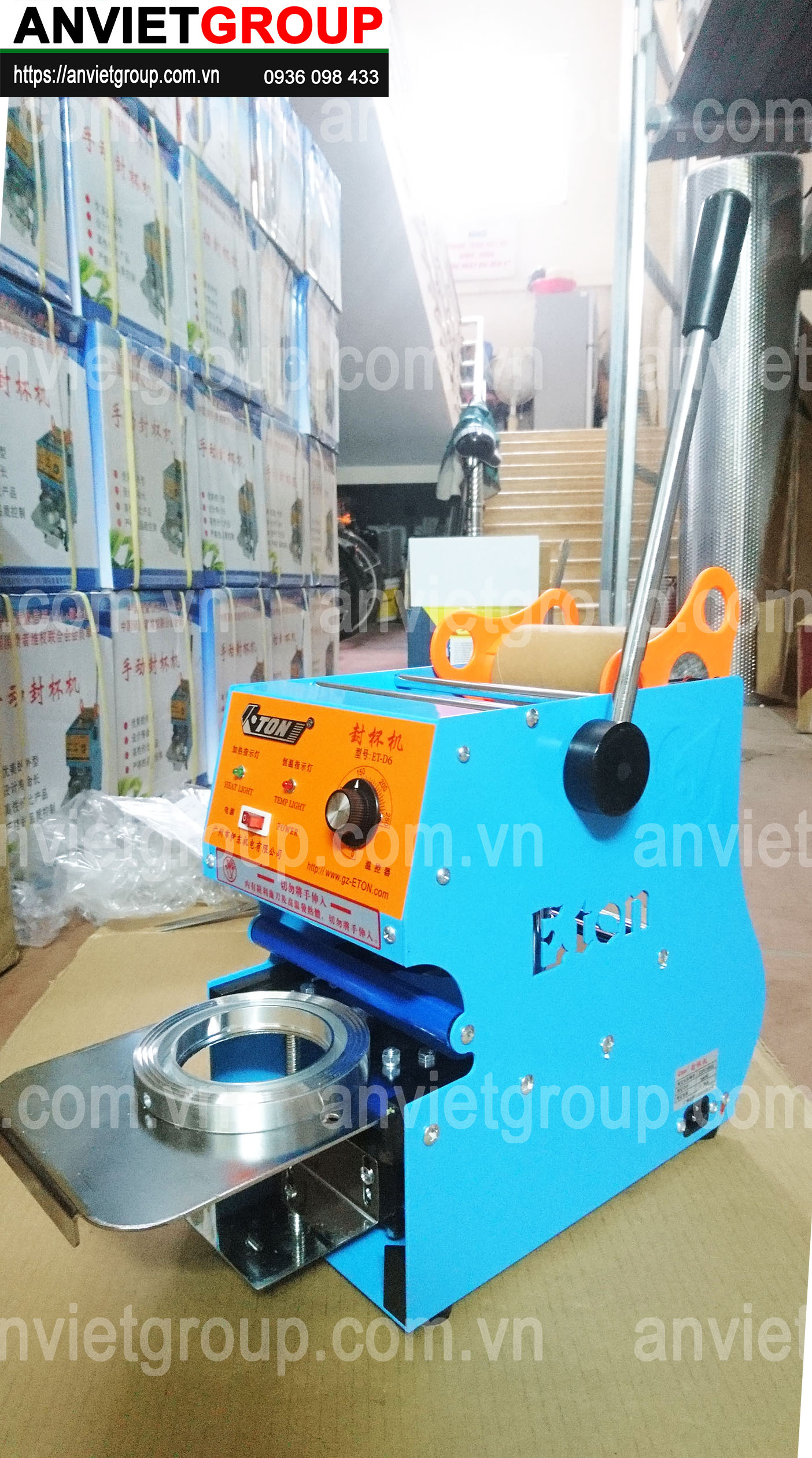 Máy dán ép đậy nắp miệng ly cốc Eton D6