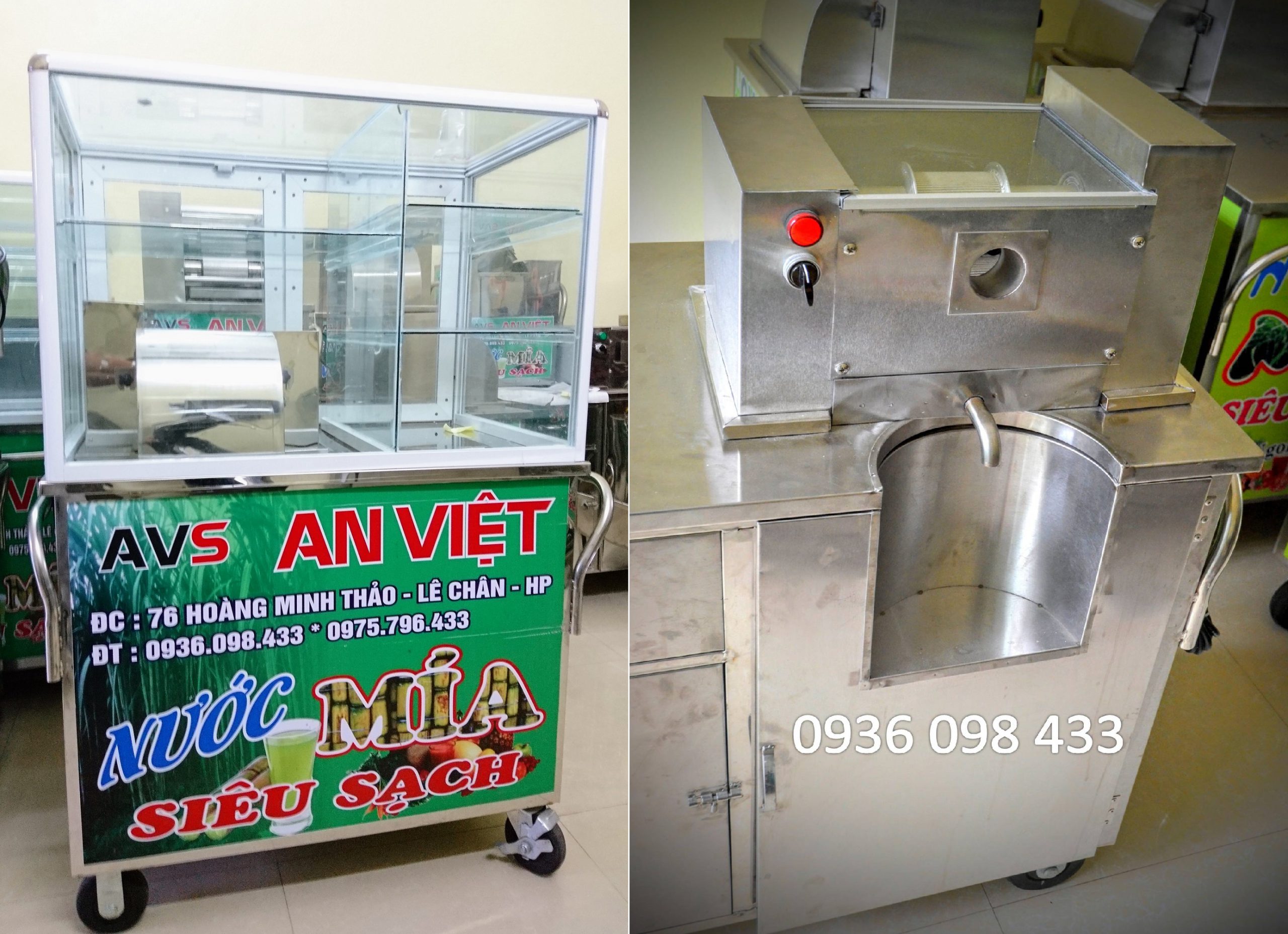 – Xe nước mía có kính phù hợp các quán bán ven đường để phòng tránh bụi vào trong mía.