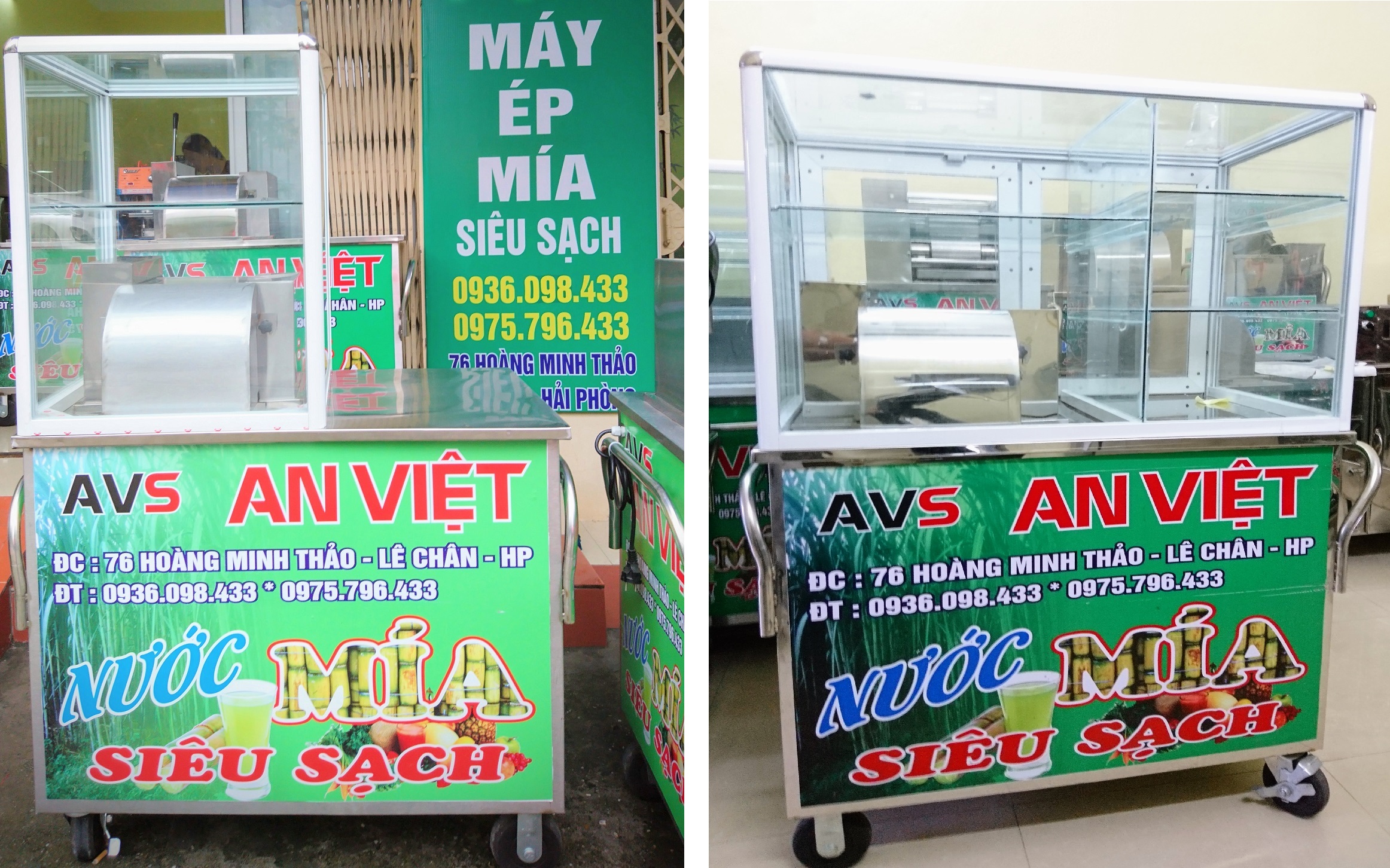 – Xe nước mía có kính phù hợp các quán bán ven đường để phòng tránh bụi vào trong mía.