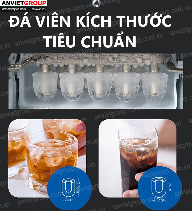 Đá có đầu tròn, không có bất kì góc cạnh nào làm tổn thương răng miệng khi uống trực tiếp. Ngoài ra, mỗi một mẻ đá được làm ra nhanh chóng chỉ trong 6 – 13 phút để bạn có thể sử dụng ngay khi cần thiết. So với tủ lạnh ở nhà, bạn không cần phải mua khay đá và tốn nhiều thời gian.
