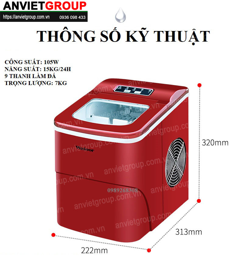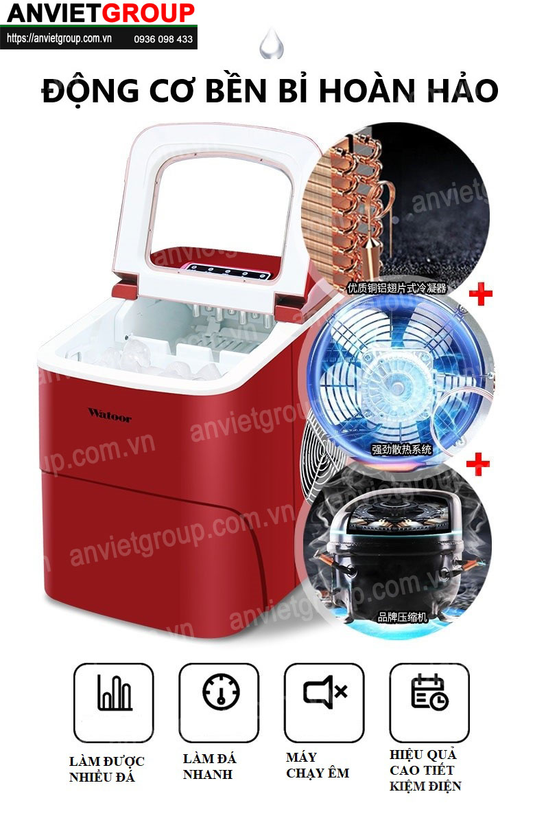 Máy làm đá viên Watoor model WZB-16H công suất 15kg/ngày
