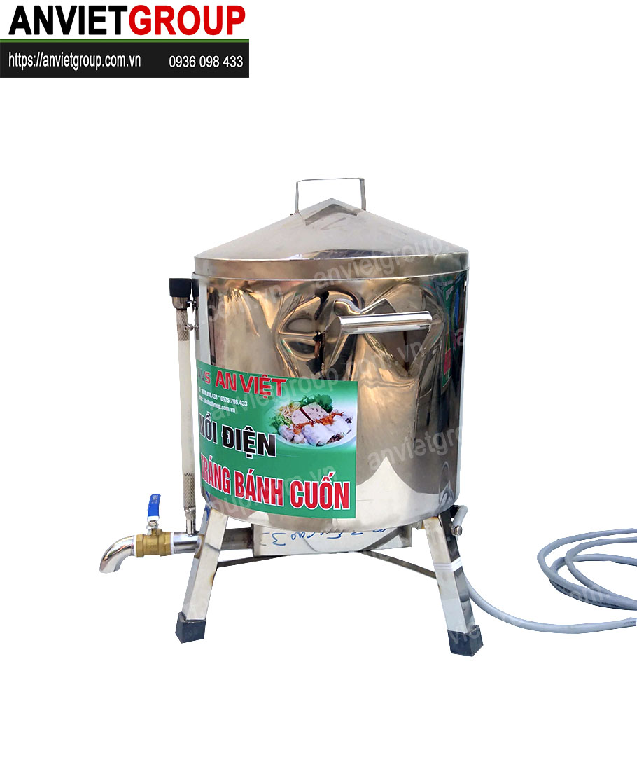 Nồi bánh cuốn điện được thiết kế đơn giản, với điện áp 220V và công suất phù hợp với các quán ăn, quán bánh cuốn nóng của nước ta.