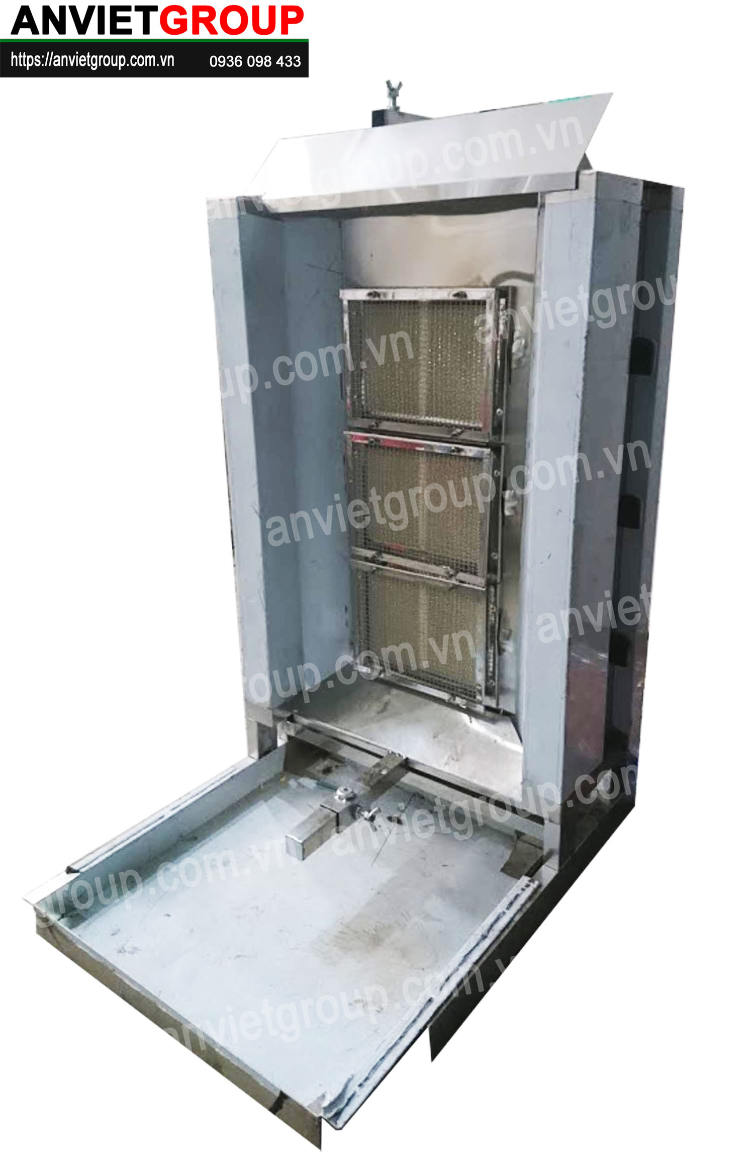 Lò nướng thịt kebab 3 buồng đốt thích hợp với những xe đẩy bán bánh mì kích thước vừa và lớn như các dòng xe 1m5, 1m6, 1m8, 2m….